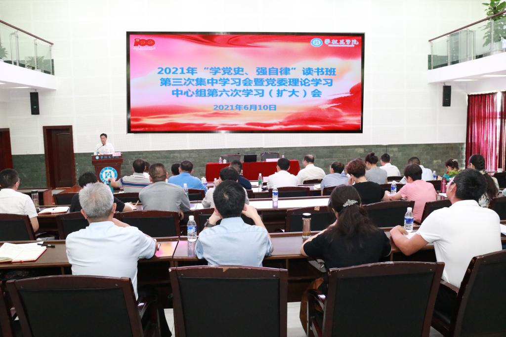 6月9日至10日,为进一步抓好党委理论学习中心组百年党史专题学习,学校党委召开2021年“学党史、强自律”读书班第三次集中学习会暨党委理论学习中心组第六次学习(扩大)会。会议进行了社会主义革命和建设时期专题学习。四川省党史学习教育省委第二十一巡回指导组副组长、教育厅一级巡视员胡卫锋,巡回指导组成员王玥、卜东东、冷帅出席会议。学校党委领导班子成员、副县级及以上干部参加学习。校党委书记王斌主持会议。