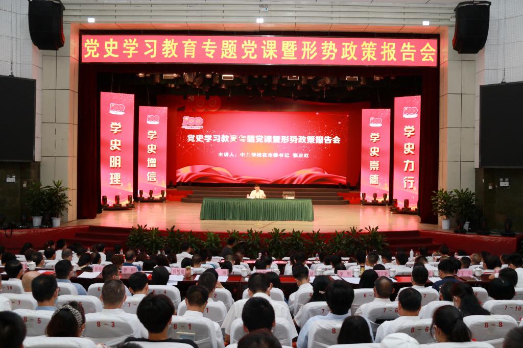 6月24日上午,市委书记张正红以《珍惜盛世韶华 锐意创新进取 为建设现代化区域中心城市贡献青春力量》为题,在学校会堂为千余名师生作党史学习教育暨形势政策专题报告。党史学习教育省委第六巡回指导组组长边慧敏出席报告会,校党委书记王斌主持报告会。