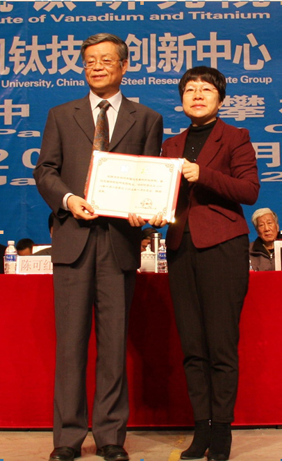 中国工程院院士、原副院长、国家新材料产业发展专家咨询委员会主任、全国政协第十二届委员及人口资源与环境委员会副主任干勇为钒钛学院授牌 |