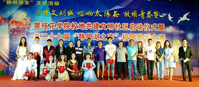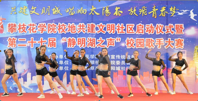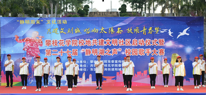 4月21日晚, 在学校科技广场、静明湖畔,以“共建文明城 唱响太阳谷 放飞青春梦”为主题的攀枝花学院校地共建文明社区启动仪式暨第二十七届“静明湖之声”校园歌手大赛在青年志愿者代表们的手语表演和宣誓中拉开序幕。活动由校党委宣传统战部主办,校团委承办,并得到了东区炳草岗街道阳城社区的大力支持。