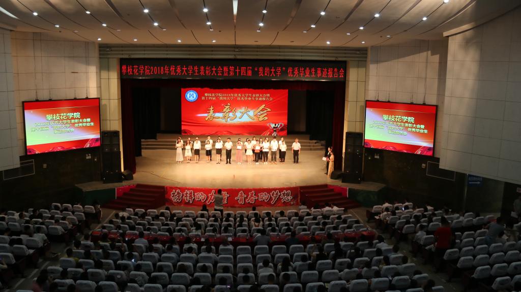大会对2016-2017学年度46个先进班集体,2017-2018学年度652名校级三好学生和491名校级优秀学生干部,2018届37名省级优秀毕业生和308名校级优秀毕业生,2016-2017学年度25名国家奖学金和585名励志奖学金获得者以及2017年600名“攀大青年”奖学金获得者进行表彰。