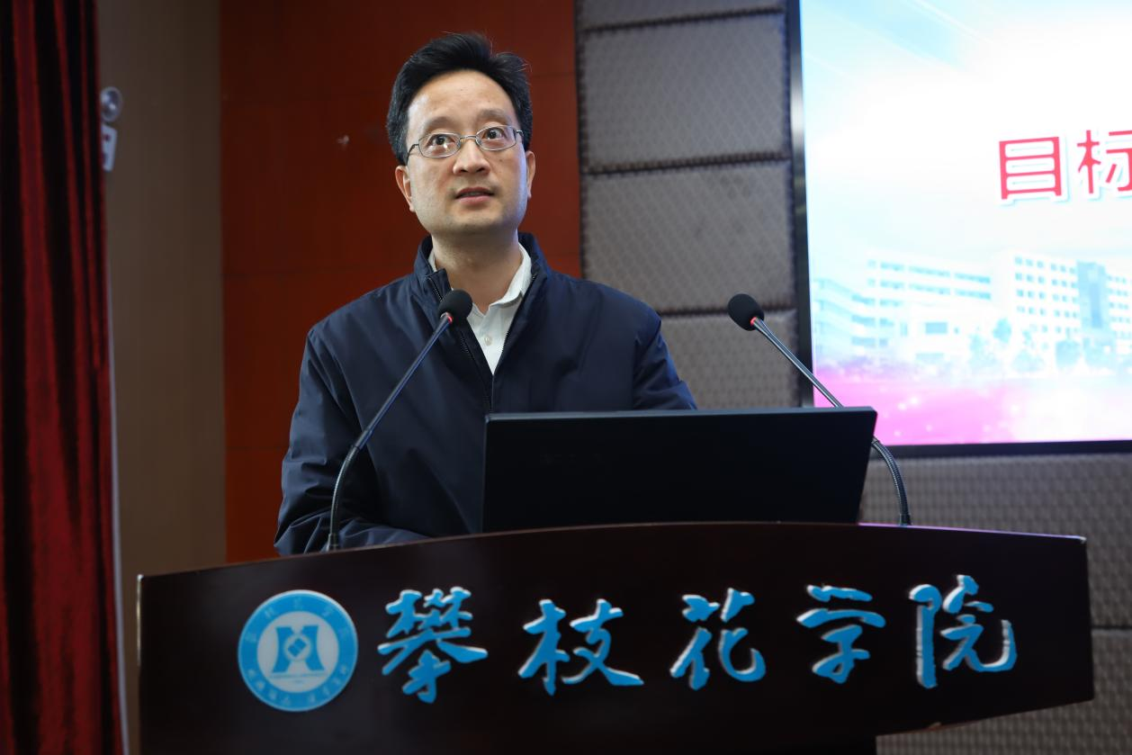 组织部、钒钛学院等28家单位围绕2021年度主要工作业绩、突出工作亮点和支持学校发展的主要贡献进行了3分钟限时陈述,校领导和各二级单位主要负责人现场测评、当面打分。
