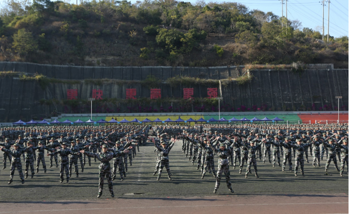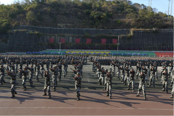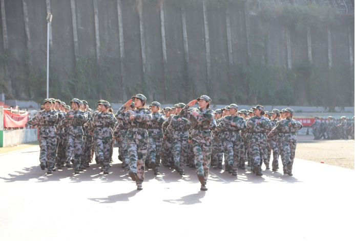 胥刚总结讲话。他表示,本次军训在新年元旦开启,由我校退伍学生担任教官,因疫情防控打破原有训练计划提前汇报表演,这都是学校军训史上的第一次。他指出,训练虽短,但效果明显,全体学生教官们表现出了严谨的作风和优良的军事素养,各受阅方队和表演方队以训练有素的表现,以精彩的军事技能汇报,为本次军训交出了一份满意的成绩单。他高度赞扬了28名预定兵投身军营的光荣选择,希望全体新生根植爱国主义情怀,传承弘扬军队优良作风,牢记保家卫国责任使命,进一步提高纪律意识、团队意识、合作意识、忍耐意识,不负青春,不负韶华。