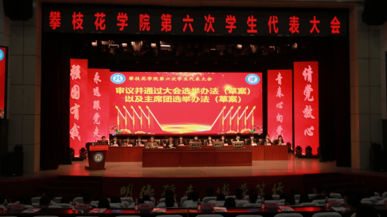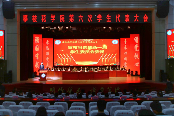 11月20日上午,在庄严的国歌声中,攀枝花学院第六次学生代表大会在会堂隆重开幕。本次学生代表大会的召开正值全面贯彻落实习近平总书记“七一”重要讲话精神、党的十九届六中全会精神,继续将新时代下学生会组织改革向纵深处推进的关键时期,是在全党全国实现了第一个百年奋斗目标,意气风发向着全面建成社会主义现代化强国的第二个百年奋斗目标迈进的关键历史节点召开的青春盛会。本次大会的主要任务是:全面回顾和总结攀枝花学院第五次学生代表大会以来学生会的工作,围绕学校第二次党代会确定的工作目标,科学规划学生会今后一个时期的工作方向和任务;进一步提升我校学生会自我服务、自我管理、自我教育和自我监督的能力,提高学生会组织服务水平,为广大学生的全面发展、成长成才搭建更广阔的舞台。