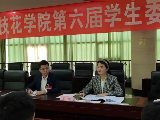 选举结束后,攀枝花学院第六届学生委员会第一次全委会在办公楼四楼会议室举行。会议选举出第六届学生委员会委员长、副委员长,聘任新一届学生委员会秘书长、副秘书长。新当选学生会执行主席做发言表态。最后,第六届学生委员会秘书长王鹃发表讲话,她向全体委员提出三点希望:一是要注重自我提升,树立榜样;二是要着眼同学,创新工作;三是要与时俱进,加强组织建设。