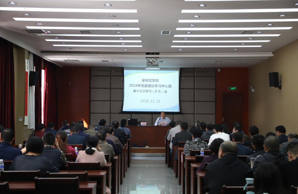1115日,我校于办公楼四楼附楼会议室召开了以“深入学习贯彻学校第二次党代会精神,扎实开展学校发展深度研讨,浓墨重彩写好新时代攀大‘奋进之笔’”为主题的2018年党委理论学习中心组第十三次学习(扩大)会,专题学习学校第二次党代会精神。会议以集中学习、分组讨论、汇报交流的形式进行。全体校领导、中层及以上干部和相关人员参加会议。党委书记肖立军主持会议并作题为《为建设应用型一流大学、建设和谐美丽幸福攀大而奋斗》总结报告。