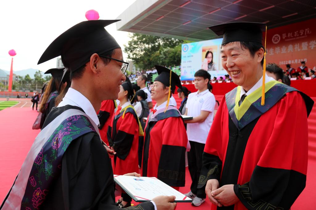 毕业典礼结束后,校领导与各二级学院2022届本科毕业生合影留念。