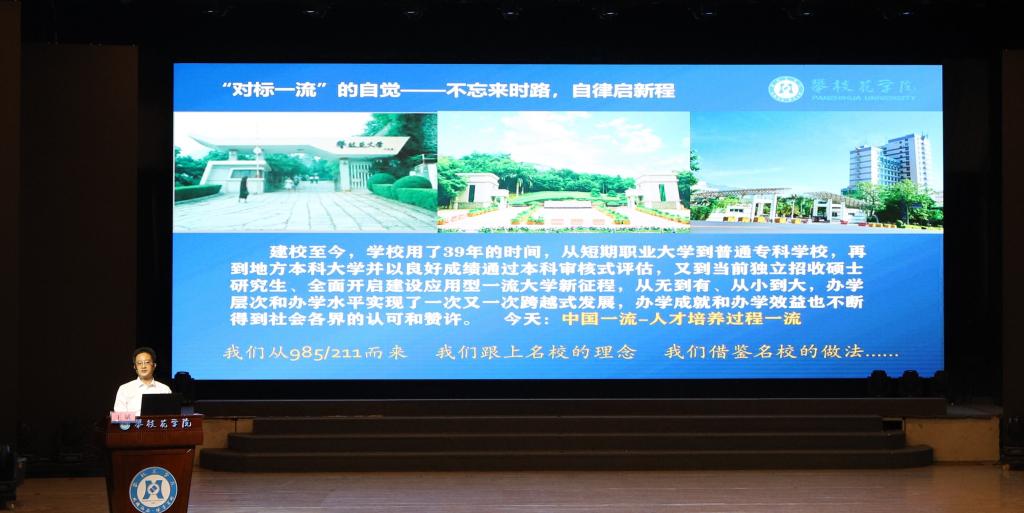 王斌以如何在新征程阶段的吃苦奋斗中践行自律为主线,从“身在三线我平实”“争创一流齐奋斗”和“二律相乘创辉煌”三个方面,阐述了身在三线的攀大学子,应有争创一流的使命,有对标一流的自觉,号召全体新生践行自律,攀登一流!