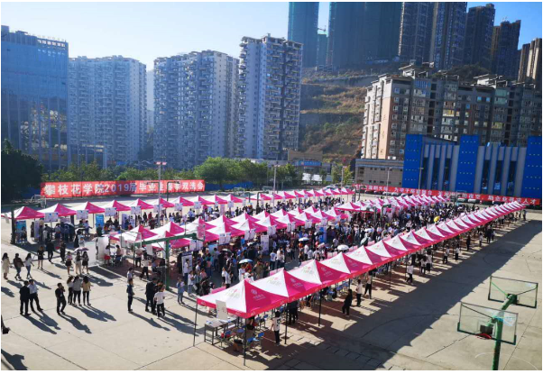 本次春节双选会规模是我校历史上最大的一次,参会企业共162家,提供就业岗位3900个,较2018年春季双选会增加了54家企业、1252个就业岗位。本次双选会呈现出我校人才培养服务地方经济社会发展的特色,与钒钛产业相关的企业13家,医学康养类企事业单位达32家。