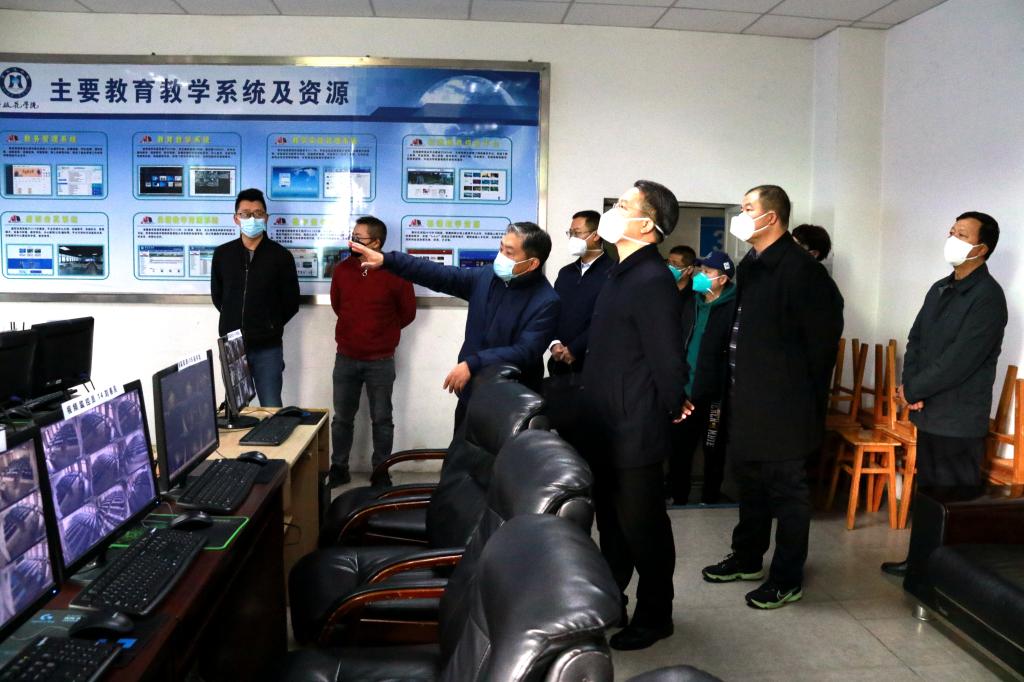 许军峰一行实地检查了标准化考场及视频监控室,详细了解学校出入口管理、考场布置、精准防控、监考教师安排、考务保障及应急管理等关键环节落实情况。