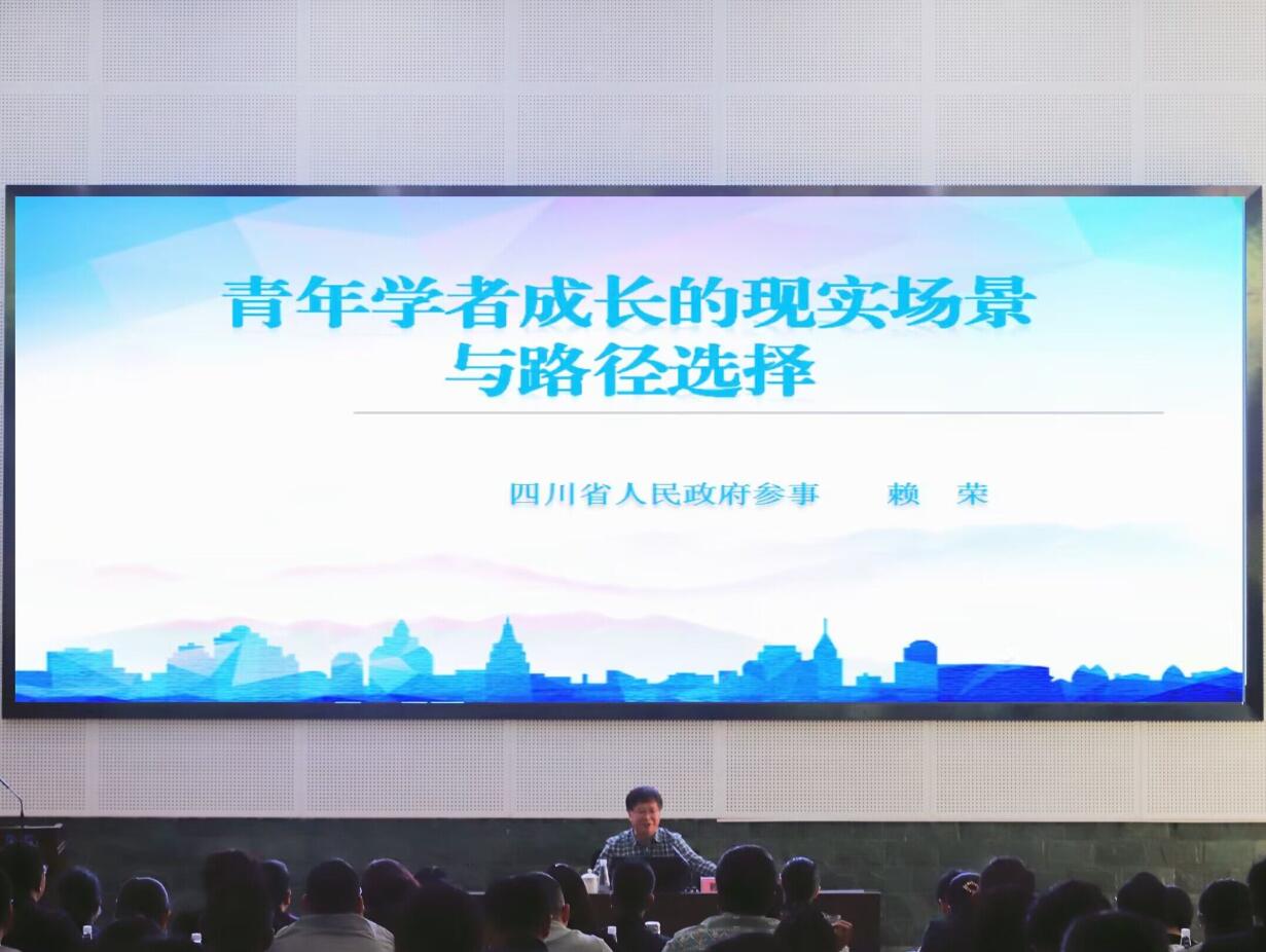 赖荣深入解读了党的二十大对人才工作的新使命、新要求,围绕“深刻把握新时代为人才发展拓展的现实场景与机遇”、“善于在务实思辨和实践创新中寻找成长路径”、“四川人才政策措施展望与人才计划项目的申报”三个方面进行论述。他指出,新时代的人才工作要把握战略主动,把准人才工作基本规律和发展趋势,探索改革创新实践着力点和突破口,积极融入全国人才“雁阵”。他强调,当代青年学者要重视“历史逻辑之根、价值逻辑值之魂、理想逻辑之梦、实践逻辑之路”,从学会承受、注重积淀、善于修炼等方面不断成长。