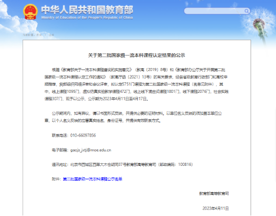 近年来,我校积极落实教育部关于一流本科课程建设的有关精神,有效推进落实立德树人根本任务,以“自律攀大人”品牌打造作为人才培养过程一流的落实机制,建设完成了一批有特色、有创新的校级和省级一流本科课程。学校3门课程认定为国家级一流课程,标志着我校深化教育教学改革,大力推进一流课程建设取得了阶段性重大成果,标志着课程建设质量达到国家“金课”标准。