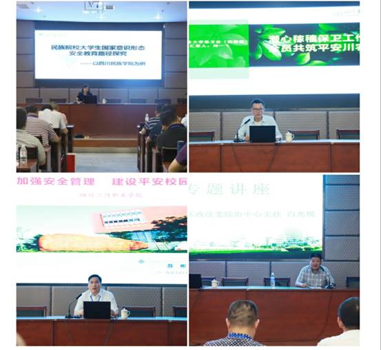 乐山师范学院保卫处处长余德刚、四川轻化工大学保卫处副处长(主持工作)李成学分别作题为《我国高校当前安全保卫工作的重点和热点问题》、《坚持总体国家安全观全力维护高校稳定》的讲座。