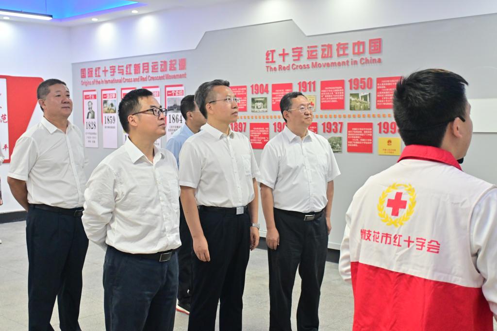 9月20日上午,四川省红十字会党组书记、常务副会长张涛一行到我校调研指导学校红十字会工作。攀枝花市副市长、市红十字会会长许军峰,市红十字会党组书记、常务副会长蒲宏,党委常委、副校长张旭辉,基础医学院相关负责人陪同调研。