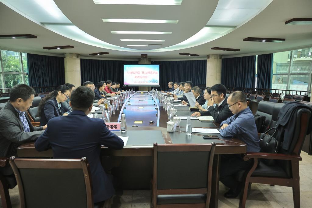 10月11日上午,乐山师范学院党委书记胡丹,党委副书记、校长刘进,党委副书记、校工会主席陈立志,党委常委、副校长陈范华率学校机关党委、党委教师工作部、校团委、科研处、校地合作处、党政办公室等一行11人到校调研交流。学校党委书记胥刚,党委副书记、校长王曙光,党委副书记刘立新,党委常委、副校长石维富陪同调研并参加座谈会。