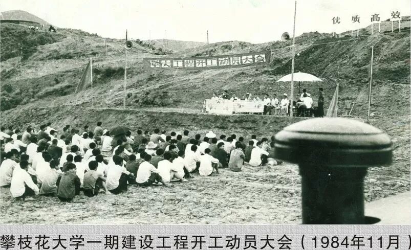 1984年9月18日,攀枝花大学首届学生如期开学。当时的校园还只是一张图纸。学校教学、实验、办公、学生住宿、教师住宿均借用市八中、市交通四中、市酿造厂场所,师生用餐和饮水借用市委食堂,一所地方短期职业大学就这样开办了。此后,攀大建设者以神圣的使命感和满腔的热情,以惊人的毅力和坚强的意志克服种种困难,引资筹款、推山填谷,逐渐把干旱酷热、人迹罕至的荒山建设成为风光秀美的校园。