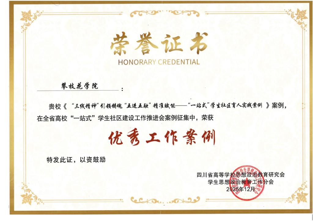 近日,四川省教育厅公布2025年高校“一站式”学生社区工作案例评选结果。我校报送的《“三线精神”引领铸魂“五进五融”精准赋能”——“一站式”学生社区育人实践案例》成功入选。