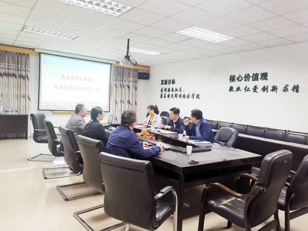 王斌听取了基础医学院关于党建、师资力量、教学改革与人才培养、学生工作、科研平台建设与服务地方等工作汇报,对基础医学院整体工作以及在临床医学专业认证工作中付出的努力给予了肯定,就学院如何实现高水平、更高质量发展进行了指导交流。