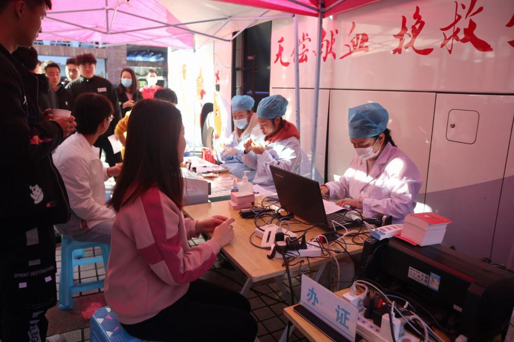 1月7号上午,在校党委书记王斌的带头下,300余名师生在致远广场积极参与了2021年 “热血更新,自律自新”无偿献血活动。