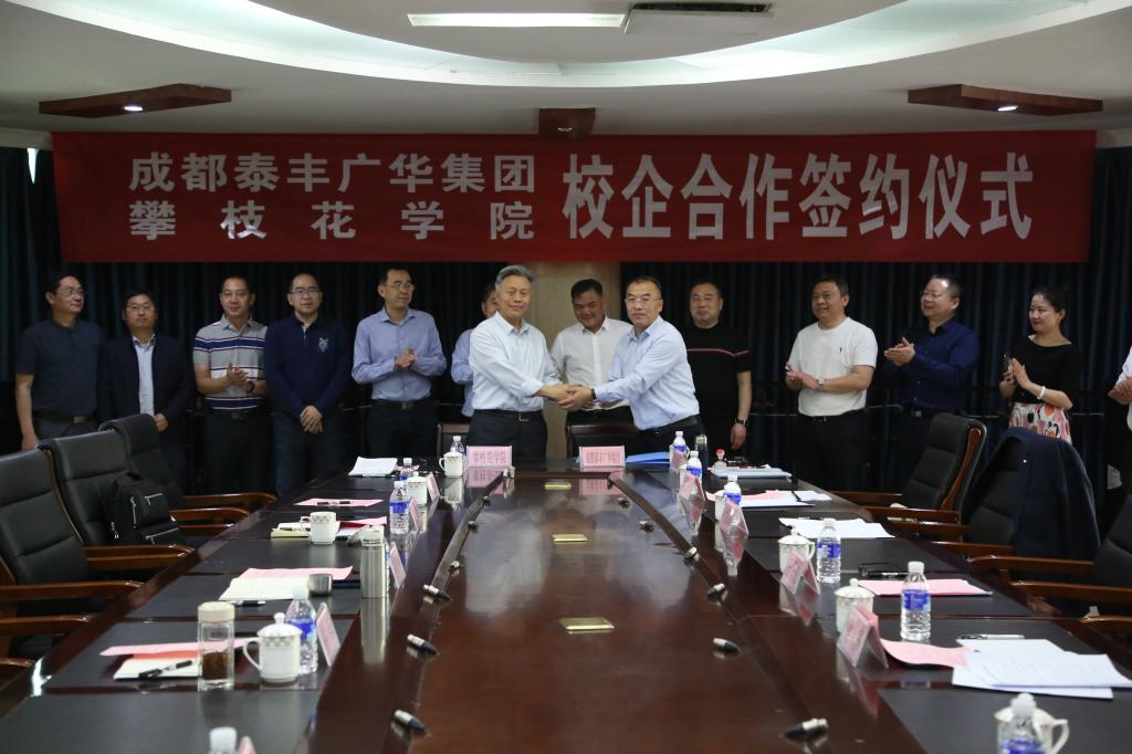 3月18日,成都泰丰广华企业有限公司、攀枝花学院校企合作签订仪式在办公楼三楼会议室举行。成都泰丰广华企业管理集团有限公司董事长王干文、总裁梁伟、副总裁付汉新、副总裁李戈及其公司相关负责人,校领导王曙光、王兵、张旭辉,党委行政办公室、教务处、科研处、招生就业处及钒钛学院相关负责人参加仪式。仪式由副校长王兵主持。