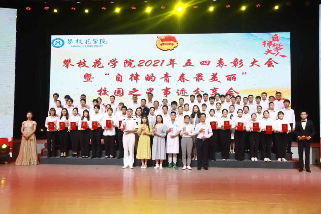 在“‘星’耀攀大,自律榜样”环节,六名校园之星代表依次上台分享了关于“自强、创新、爱国、创业、道德”的青春故事,展现青年学生自律担当、自律自信、自律奋进、自律传承、自律力行的精神品质,为“自律攀大人”树立了标兵典范。
