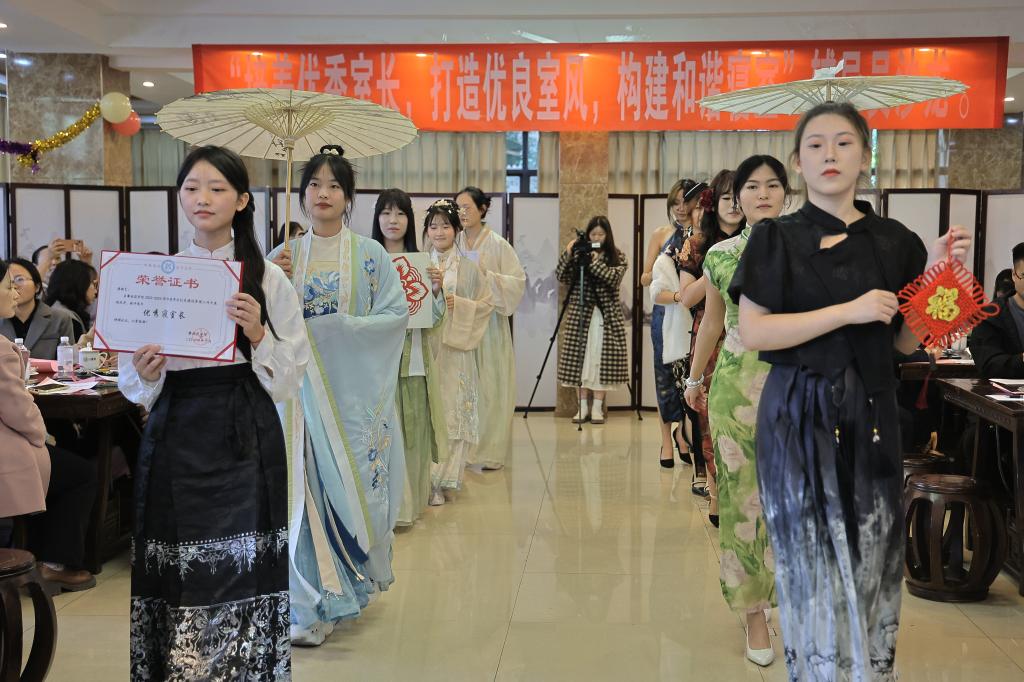 文学院展示了中国结、油纸伞、剪纸、书法、团扇等丰富多元的寝室手工文化,借助茶艺表演,讲述寝室长带领室友学习、传播中华优秀传统文化,通过演绎原创话剧《风波不止》,真实还原了寝室长处理纠纷的场景。辅导员老师们围绕“寝室长如何助力辅导员筑牢寝室安全防线”“如何加强寝室长队伍建设”等问题展开了热烈的探讨,分享案例,交流经验,从不同视角为应对寝室矛盾、发挥管理效能建言献策。