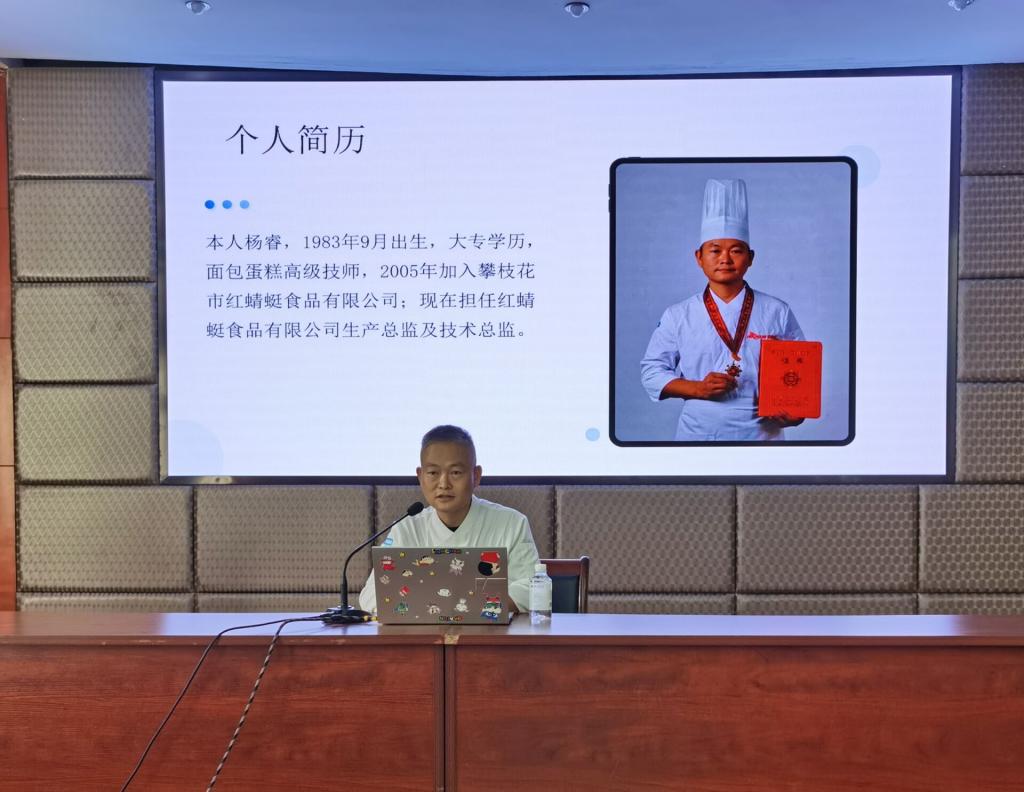 宣讲环节,由四川省劳动模范、攀枝花市红蜻蜓食品有限责任公司技术总监杨睿主讲。杨睿结合自身二十年糕点设计与研发工作经历,从初入岗位时的懵懂探索,到面对技术难题时的反复攻坚,再到获得行业竞赛的金奖,用朴实无华的语言讲述了一个个真实鲜活的劳动故事。他表示,“二十年可以做很多事,但在一个行业深耕二十年,需要热爱和坚持,正是这份热爱和坚持,才能让一个默默无闻的手艺人被更多人看到,站上省劳模的领奖台。” 他还结合生化、农业领域的专业特点,鼓励同学们珍惜在校学习时光,将理论知识与实践操作紧密结合,未来在专业领域深耕细作,用劳动创造价值,用奋斗实现梦想。