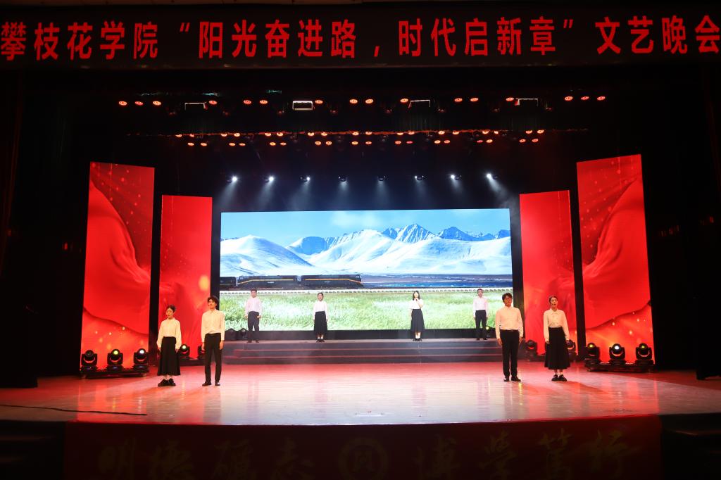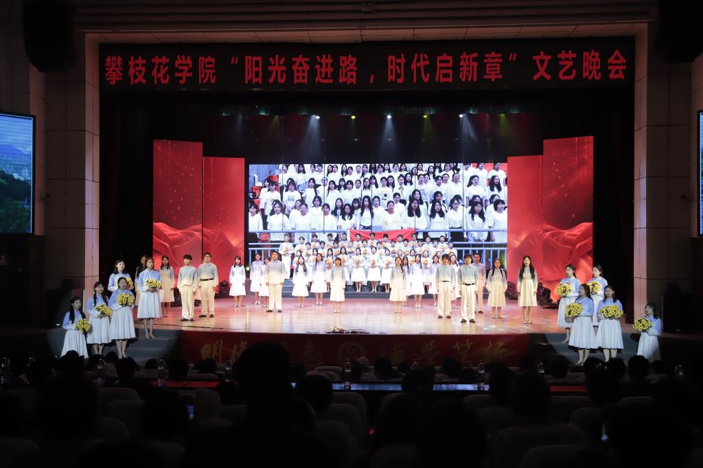 本篇章着眼于未来,表达了全体师生在新征程上勇担使命、开创未来的坚定决心。赵娜老师带来的女声独唱《领航》,用高亢嘹亮的歌声赞颂了伟大的时代,唱出了引领前行的磅礴力量;街舞《炽焰》以充满爆发力的表演,象征着青年一代蓄势待发的激情与能量;配乐诗朗诵《阳光花城·英雄颂歌》深情讴歌了攀枝花这座英雄城市及其人民,抒发了继往开来的豪情壮志;古典舞《我的祖国》用柔美而有力的舞姿,表达了莘莘学子对祖国最深切的爱恋与祝福。