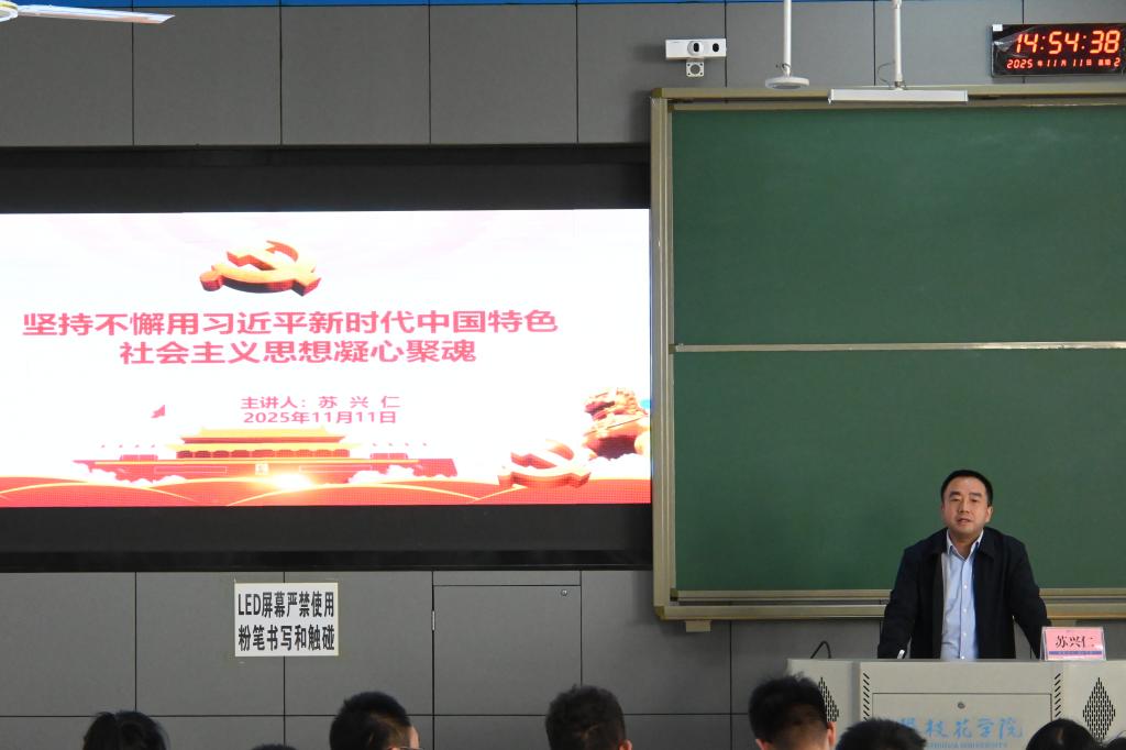 为深入学习贯彻习近平新时代中国特色社会主义思想,11月11日下午,团委在尚学楼115教室举办2025年第一期“阳光讲堂”——坚持不懈用习近平新时代中国特色社会主义思想凝心聚魂。校党委常委、宣传部部长苏兴仁担任主讲。青马班学员、各团学组织骨干代表等90余人参加讲座。