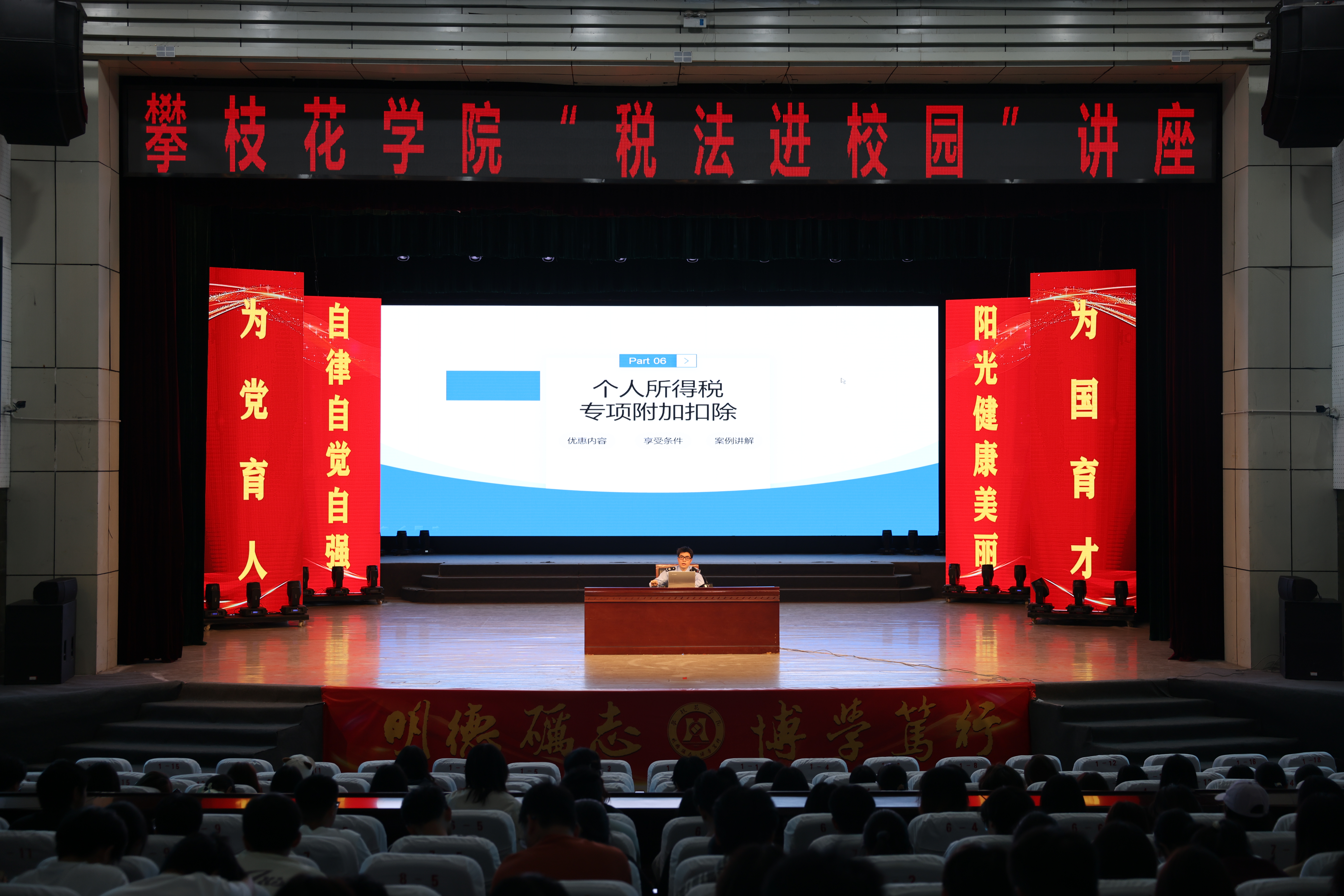 为提升我校学生税收法治意识,帮助青年学子掌握就业创业相关税收政策,11月14日下午,我校在阳光会堂举行“税法进校园”普法宣讲活动。本次活动由学校学工部和东区税务局联合主办,400余名学生参与了学习。