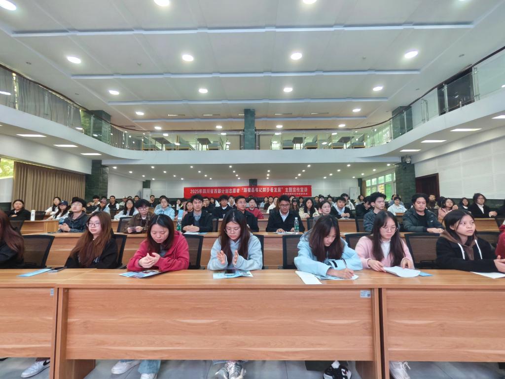 据悉,本次分享会是四川省西部计划项目办“青春西部行”系列宣讲的重要一站,旨在通过真实生动的志愿者故事,展现西部计划不仅是志愿服务,更是能力与思想的双重淬炼。活动号召广大学子以理想为帆、以担当为桨,在西部广阔天地中书写绚烂的青春篇章。