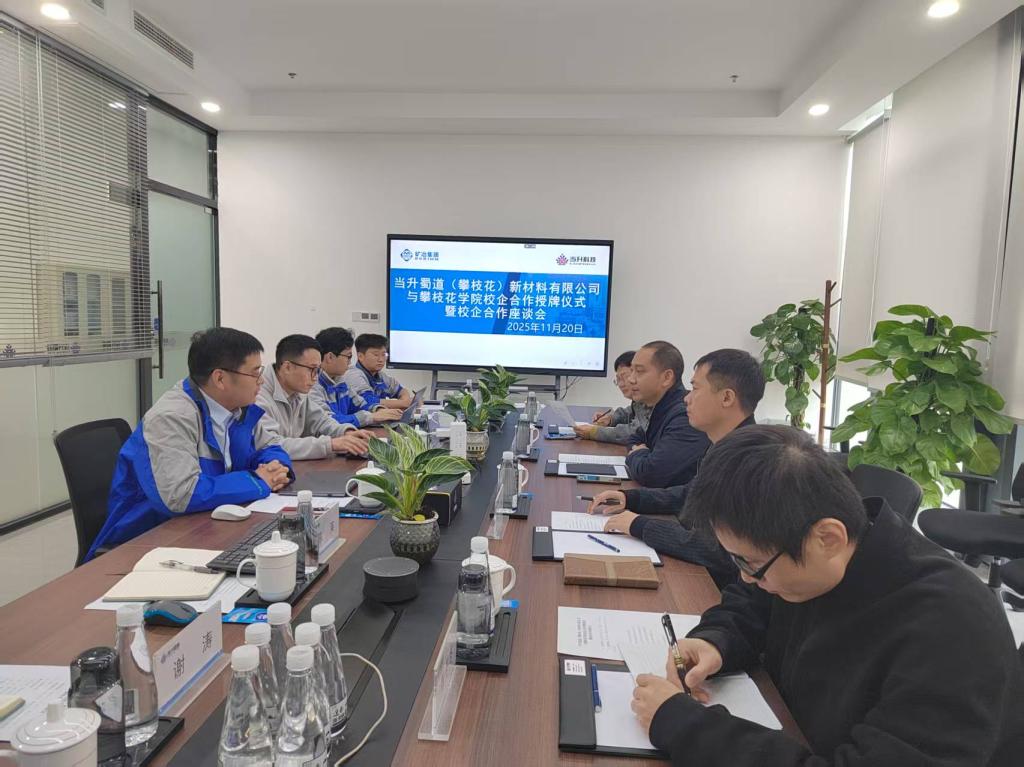 座谈会后,双方隆重举行了校企合作授牌仪式。攀枝花学院向当升蜀道(攀枝花)新材料有限公司正式授予了三块铭牌:“攀枝花学院校企合作单位”“攀枝花学院大学生就业基地”以及“攀枝花学院实践教学基地”。这一举措标志着双方战略合作伙伴关系的正式确立与深化。